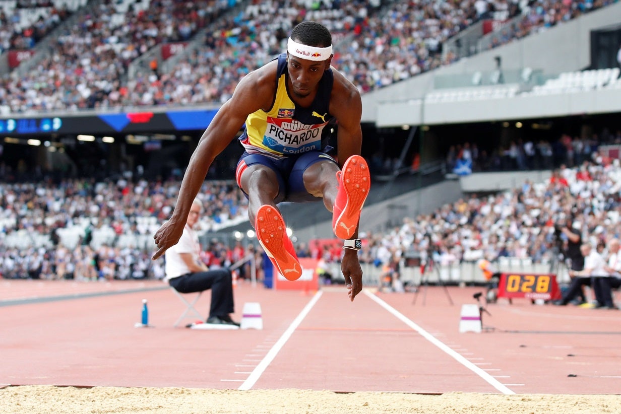 Pedro pablo pichardo venceu a prova no qatar, derrotando o campeão olímpico christian taylor e saltando 21 centímetros mais longe do que a melhor marca nacional do triplo salto, os 17.